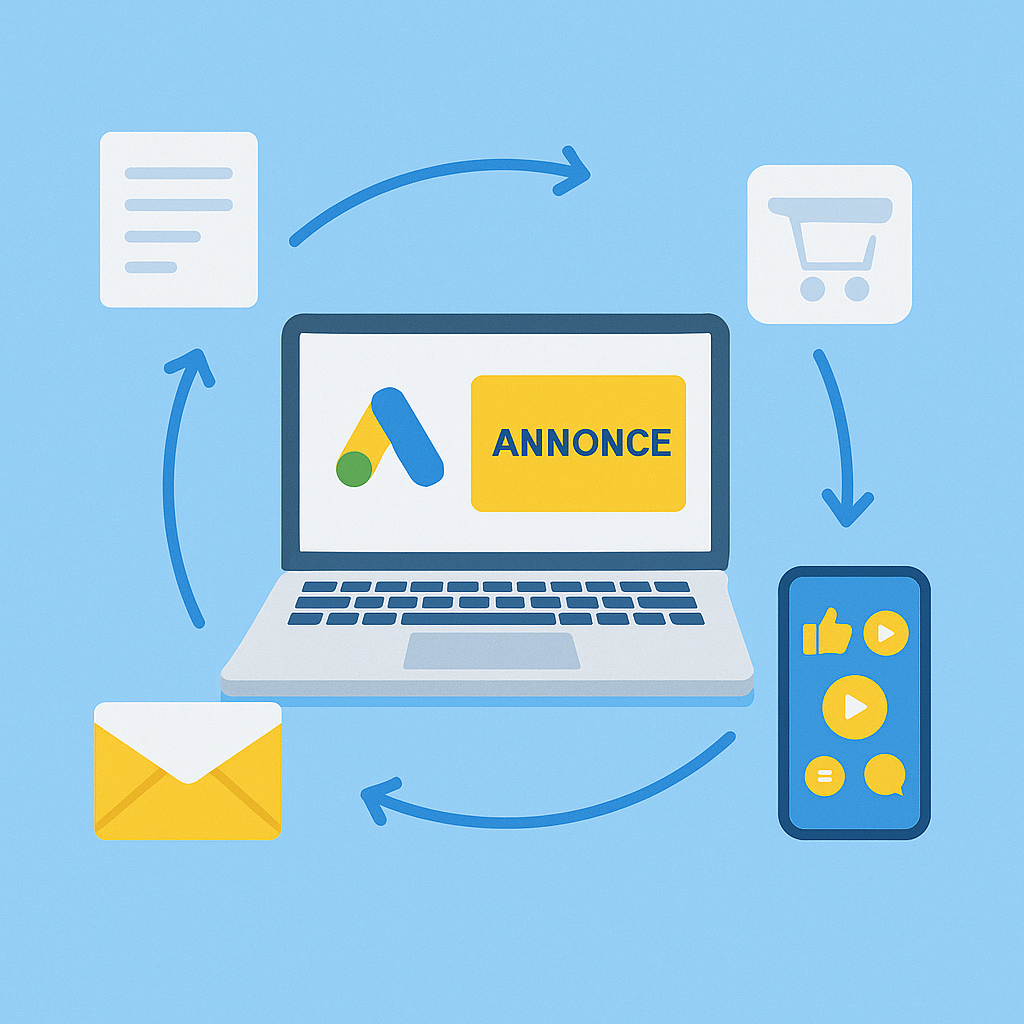 Pour obtenir les meilleurs résultats, une campagne de retargeting Google Ads ne devrait pas être pensée de manière isolée. Bien qu’elle constitue une base solide, son efficacité est encore plus grande lorsqu’elle s’intègre dans une stratégie de retargeting multi-canal. L’idée est simple : plus un consommateur voit votre marque dans différents contextes, plus vous occupez une place importante dans son esprit au moment où il prendra sa décision. Il existe plusieurs autres formes de reciblage publicitaire qui peuvent compléter efficacement votre stratégie de marketing digital.