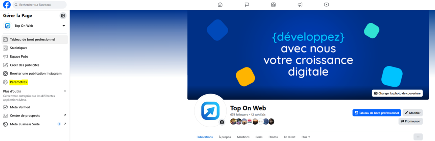 Etape 3 : Avoir une page Facebook d’entreprise professionnelle et nous y donner accès