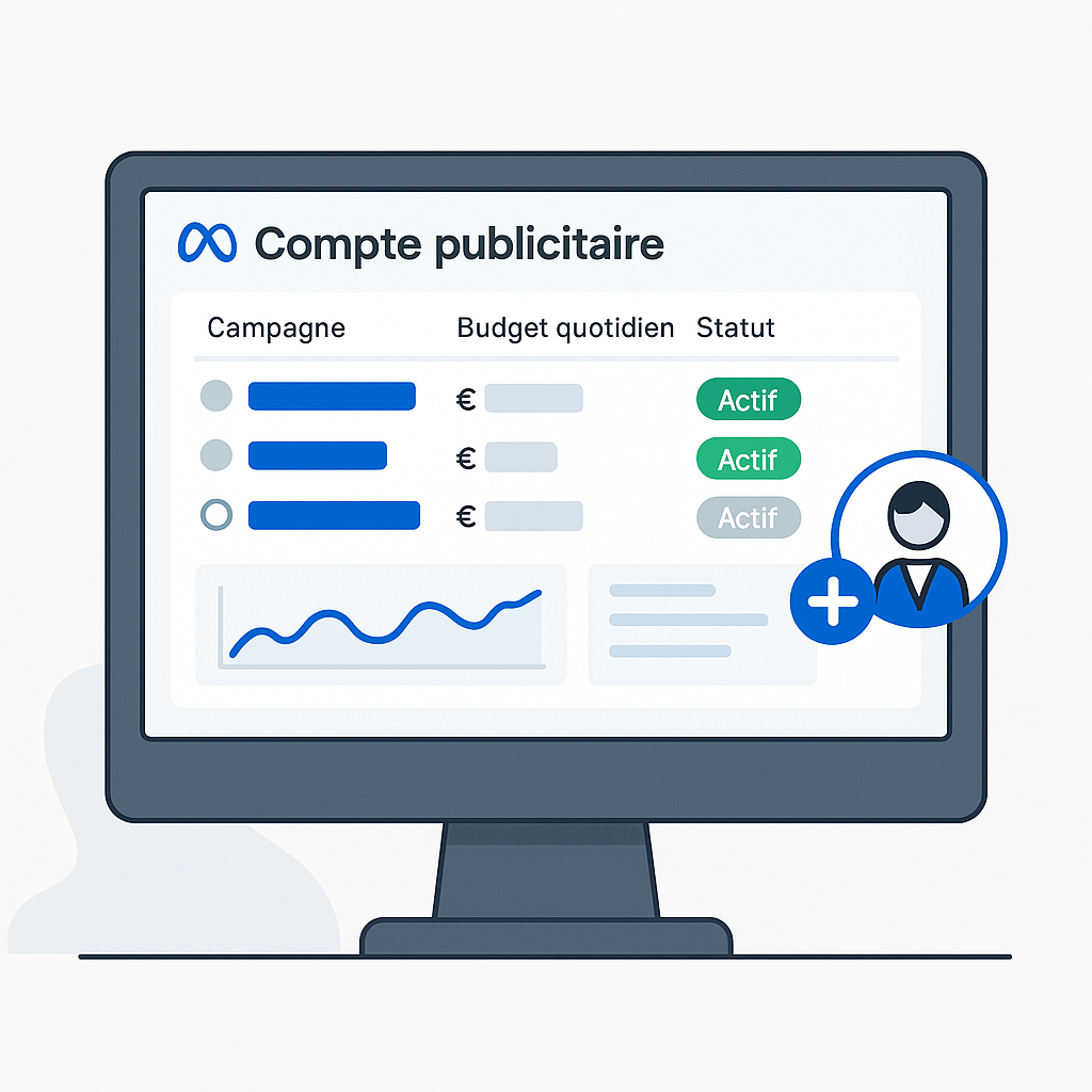 Si nous avons besoin d'accéder à votre compte publicitaire, c'est surtout pour pouvoir le lier à vos campagnes : la plateforme doit savoir quel compte publicitaire facturer pour quelle campagne. NB : La facturation est gérée directement par Meta. Notre agence ne voit pas vos informations de paiement.